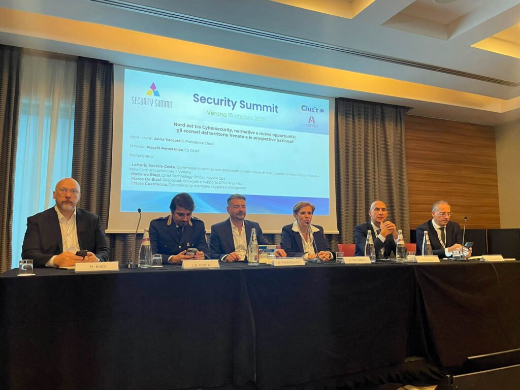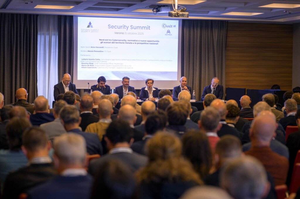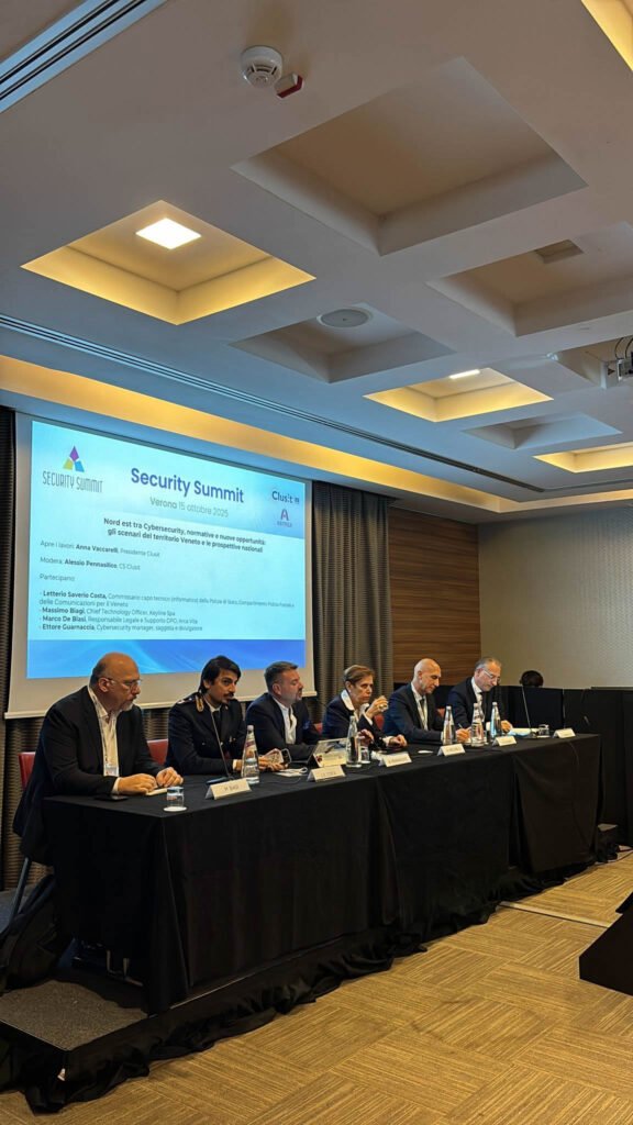 Nella plenaria di apertura, aperta dal Presidente Clusit, Anna Vaccarelli, e moderata dal membro del Comitato Scientifico Clusit, Alessio Pennasilico, partendo dai dati salienti del Rapporto Clusit 2025, abbiamo affrontato il tema della cybersecurity come fattore strategico per la competitività e la resilienza del sistema-Paese, con particolare riguardo alla crescita e alla fiducia nel contesto del Nord Est, dove il tessuto produttivo e istituzionale è particolarmente attivo in termini di innovazione digitale. Sul palco anche Letterio Saverio Costa, Commissario Capo Tecnico della Polizia Postale per il Veneto, Massimo Biagi, CTO di Keyline, e Marco De Biasi, esperto legale e supporto DPO di Arca Vita. Nel corso della sessione plenaria ho citato alcuni temi del mio libro “CYBERSECURITY INTELLIGENCE 2.0“.