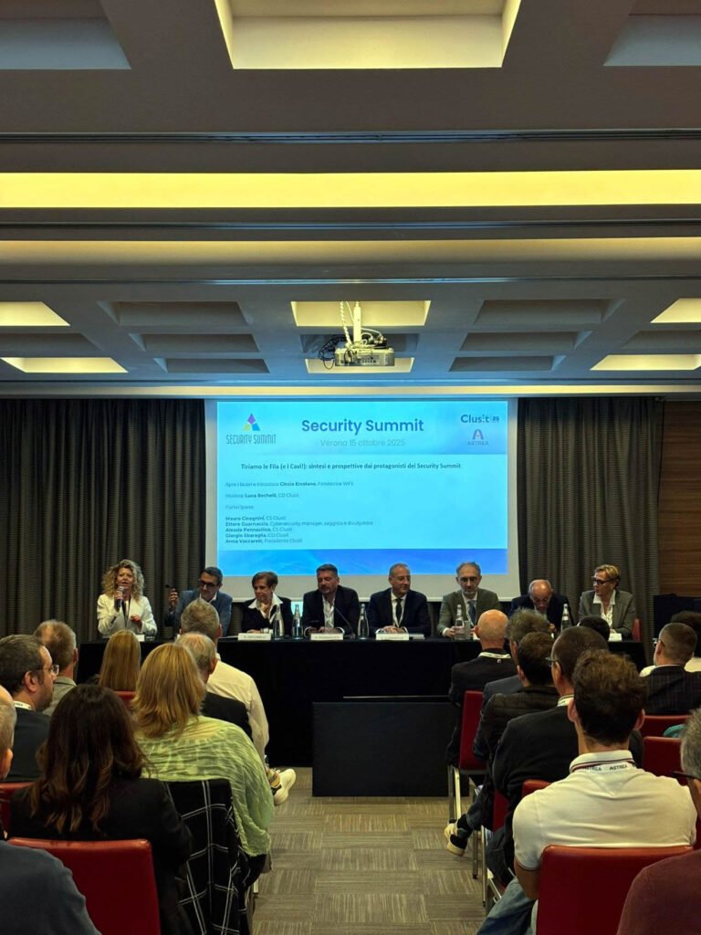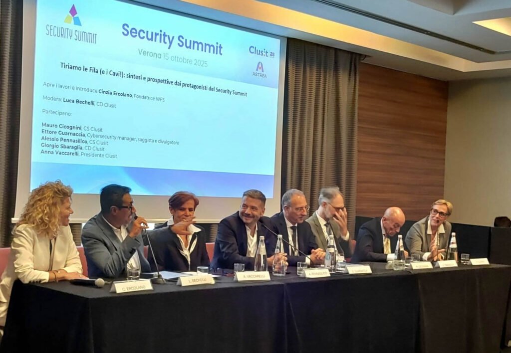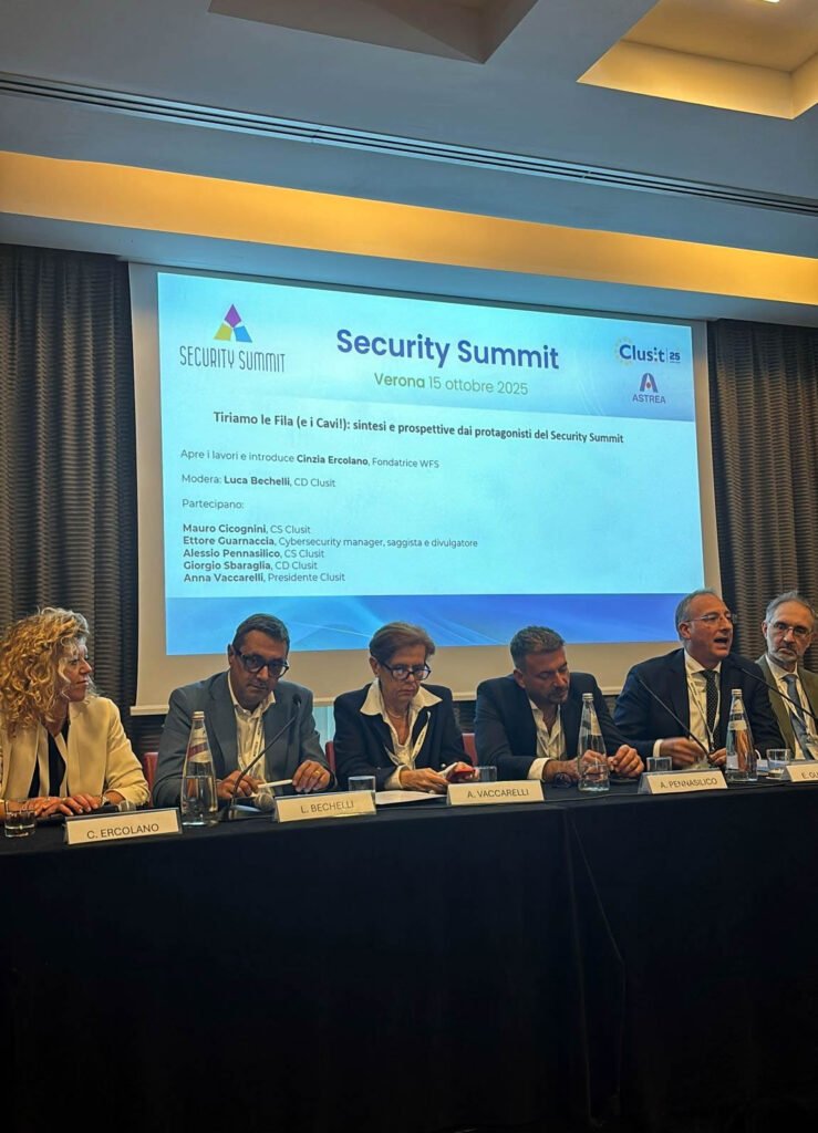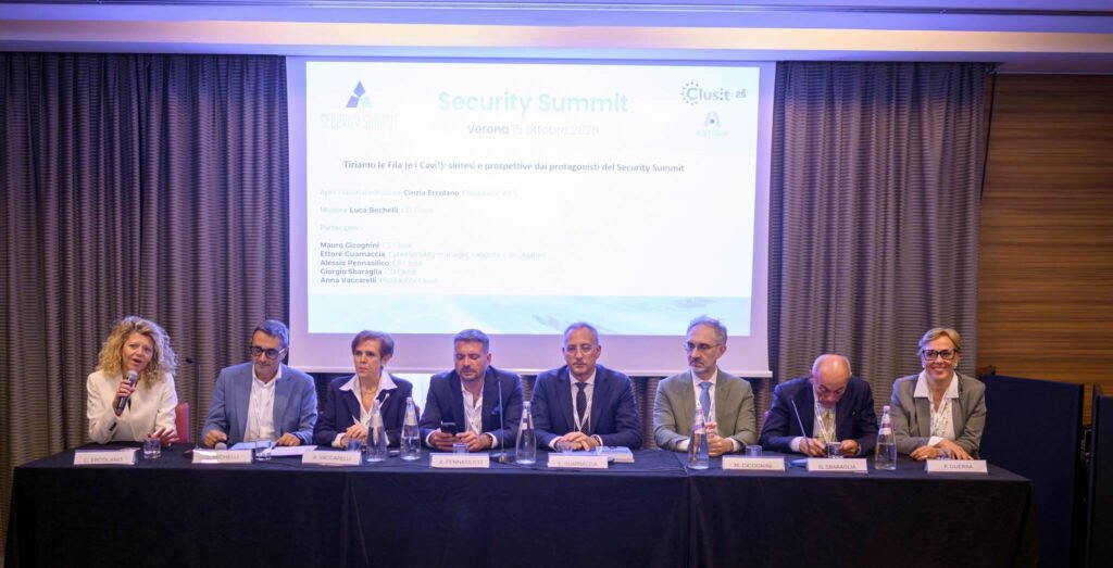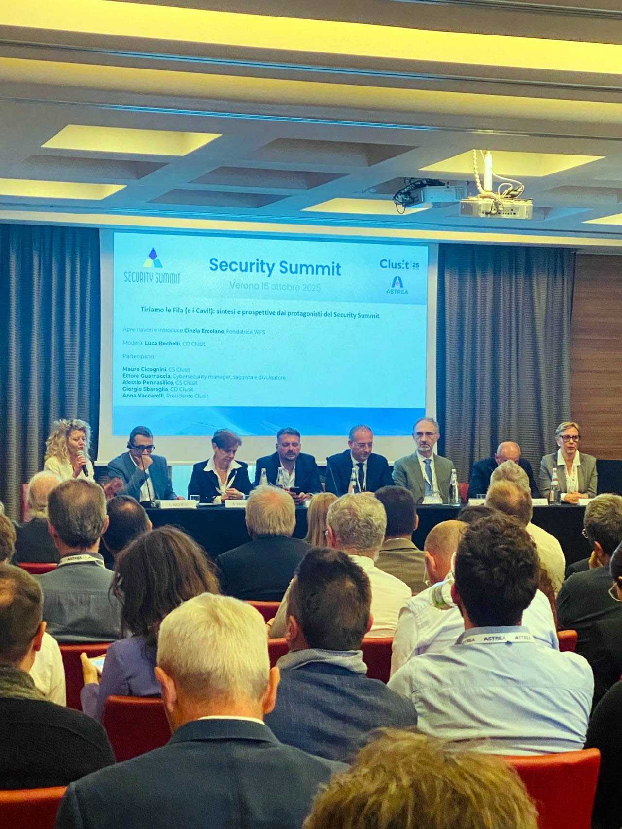 La giornata, ricca di contenuti, relazioni e partecipanti, si è conclusa con la sessione plenaria di chiusura, che ha riunito voci e punti di vista per mettere a fuoco i temi, le opportunità e le priorità emerse nel corso dell’evento. È stato un confronto aperto e stimolante, che ha offerto una visione d’insieme sulle sfide che attendono il settore della cybersecurity: dall’evoluzione normativa alla trasformazione tecnologica, dagli effetti della tecnologia sulla società e l’individuo al ruolo della cultura di sicurezza come leva di crescita e consapevolezza. Sul palco, insieme ad Anna Vaccarelli e Alessio Pennasilico, anche Cinzia Ercolano, CEO di Astrea e fondatrice di Women for Security, Luca Bechelli e Giorgio Sbaraglia, membri del Comitato Direttivo Clusit, e Mauro Cicognini e Paola Guerra, membri del Comitato Scientifico Clusit.
