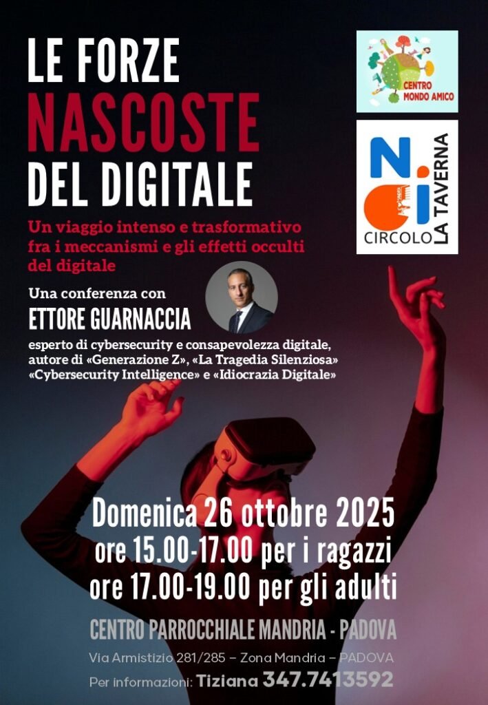 Una domenica pomeriggio diversa dal solito, ma assolutamente gratificante, passata a spiegare quali forze si nascondono nella tecnologia digitale a oltre centocinquanta ragazzi dai 12 ai 19 anni presso il Centro Parrocchiale della Parrocchia della Natività della Beata Vergine Maria in zona Mandria a Padova, in una conferenza organizzata da Centro Mondo Amico e dal Circolo Noi “La Taverna”. La splendida sala del centro era pressoché piena di occhi e orecchie spalancate per apprendere quali sotterfugi vengono sfruttati per catturare l’attenzione degli utenti più giovani e ipnotizzarli il più a lungo possibile.