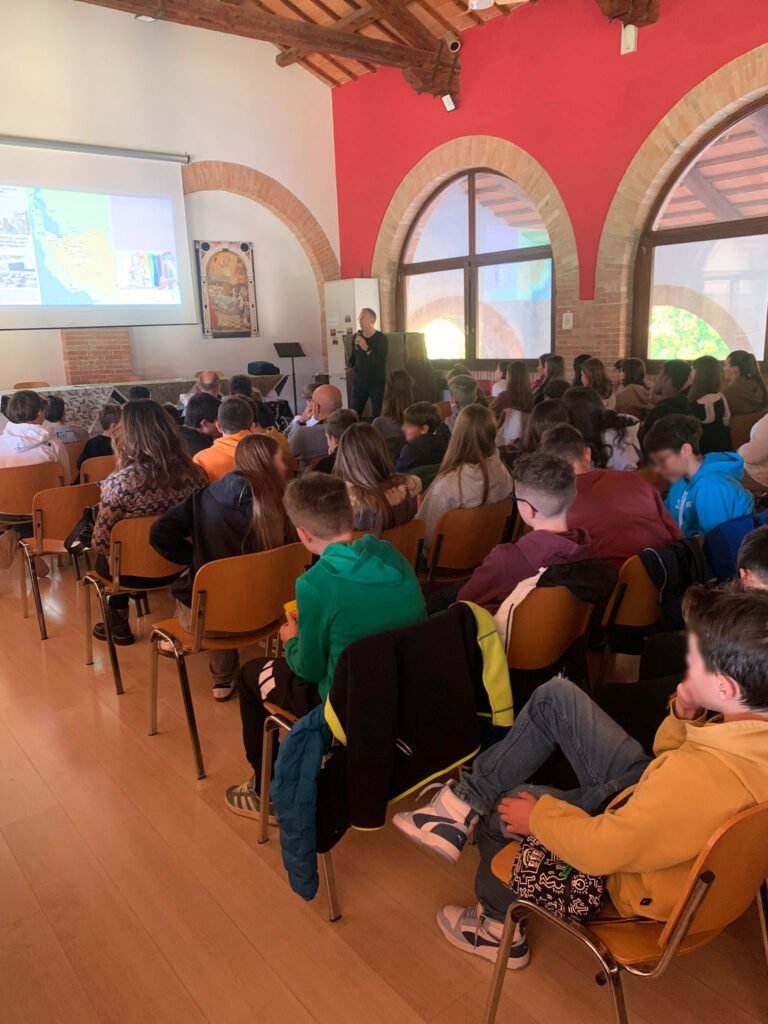 La locandina e alcune immagini della conferenza con i ragazzi della Mandria di Padova