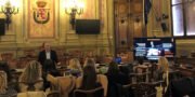 Alcune immagini della conferenza con i saluti iniziali di Stanislao Pecchioli, la locandina e il programma del progetto “Cambio di Rotta”