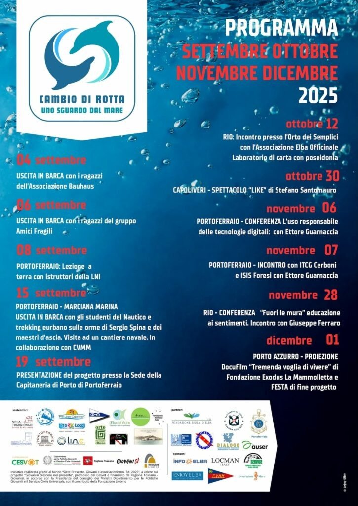 “Cambio di Rotta” è un’iniziativa educativa e sociale rivolta a giovani tra i 14 e i 35 anni dell’Isola d’Elba, promossa per contrastare fenomeni di disagio, isolamento e dipendenze. Il progetto utilizza la navigazione a vela come metafora e strumento pedagogico per favorire la crescita personale, la cooperazione intergenerazionale e la scoperta di sé attraverso il viaggio. Il mare e la barca diventano luoghi di apprendimento, relazione e inclusione, in cui ragazzi e adulti collaborano secondo regole condivise, imparando a gestire emozioni, limiti e responsabilità. L’esperienza formativa mira a risvegliare la curiosità verso il territorio, la storia e la vita di comunità.
