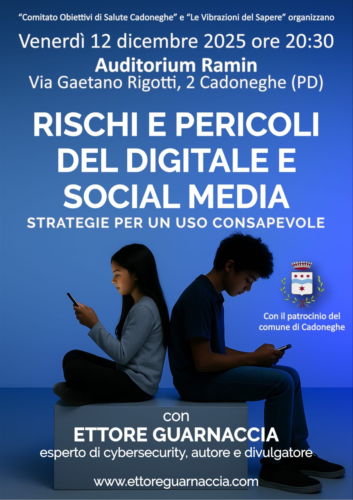 Un’altra straordinaria serata di grande partecipazione quella di venerdì 12 dicembre all’Auditorium Ramin di Cadoneghe (PD) per un altro appuntamento con la conferenza “Le Forze Nascoste del Digitale“. L’evento, organizzato dal Comitato Obiettivi di Salute Veneto e patrocinato dal Comune di Cadoneghe, ha richiamato numerose persone desiderose di approfondire il lato oscuro della tecnologia, gli effetti e i meccanismi occulti, in un viaggio trasformativo tra ieri, oggi e domani. Numerose anche le domande, le considerazioni e le attestazioni di apprezzamento che ho ricevuto a conclusione della conferenza.