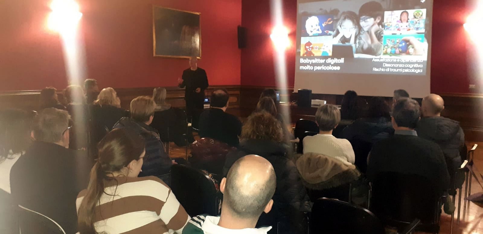 Un’altra fantastica serata quella di venerdì 20 febbraio nella splendida cornice della sala rossa di Villa San Fermo a Lonigo (VI) con i genitori e gli insegnanti dell’istituto di pedagogia steineriana Scuola Libera. Oltre sessanta persone hanno riempito la storica sala per assistere a “Le Forze Nascoste del Digitale” e per raccogliere quanto espresso dagli studenti della classe ottava che ho avuto il privilegio di incontrare il 19 gennaio scorso nelle aule della Scuola Libera.